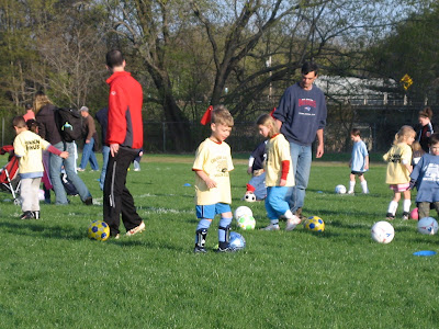 Oh did I laugh!!! It was wonderful to see them run around and have 8 kids clustered around one ball all kicking at once. It is micro soccer so there must have been 50 or so teams with only 8 kids on each team and they all fit on one field sideways. Perfect!!! My boys made me proud - no soccer stars yet but great effort and that is all I wanted to see. :)